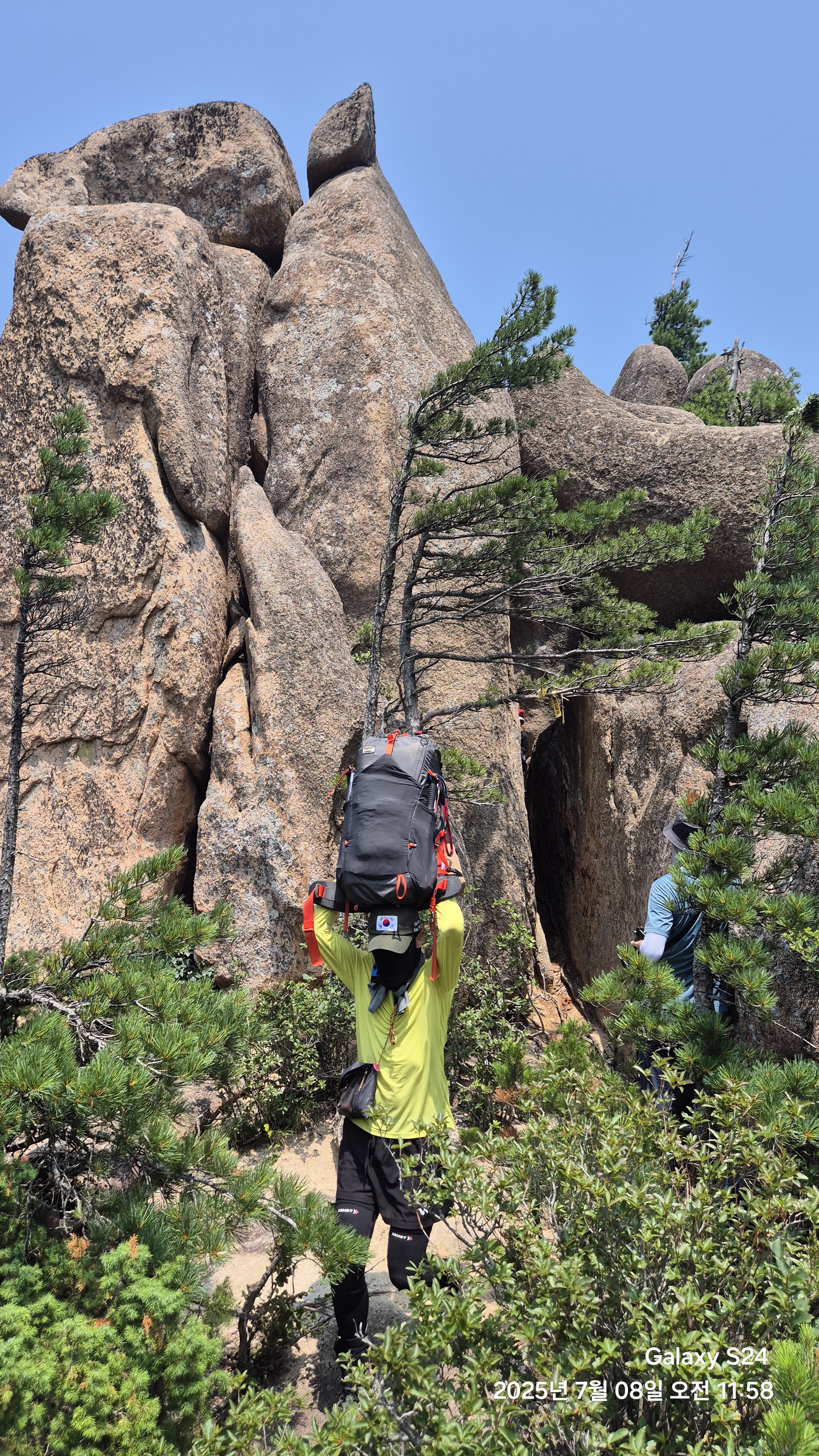 인원이 많고 낙석이 염려되어 한사람씩 올라가니 시간이 많이 걸렸다.