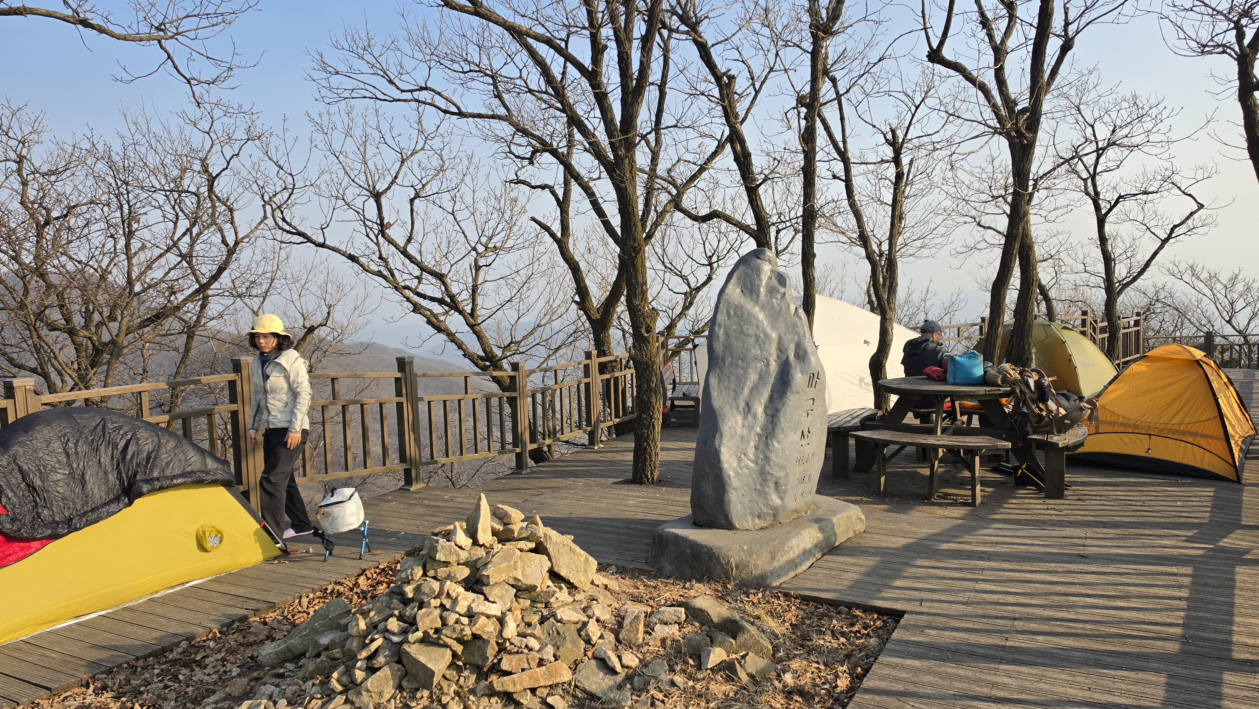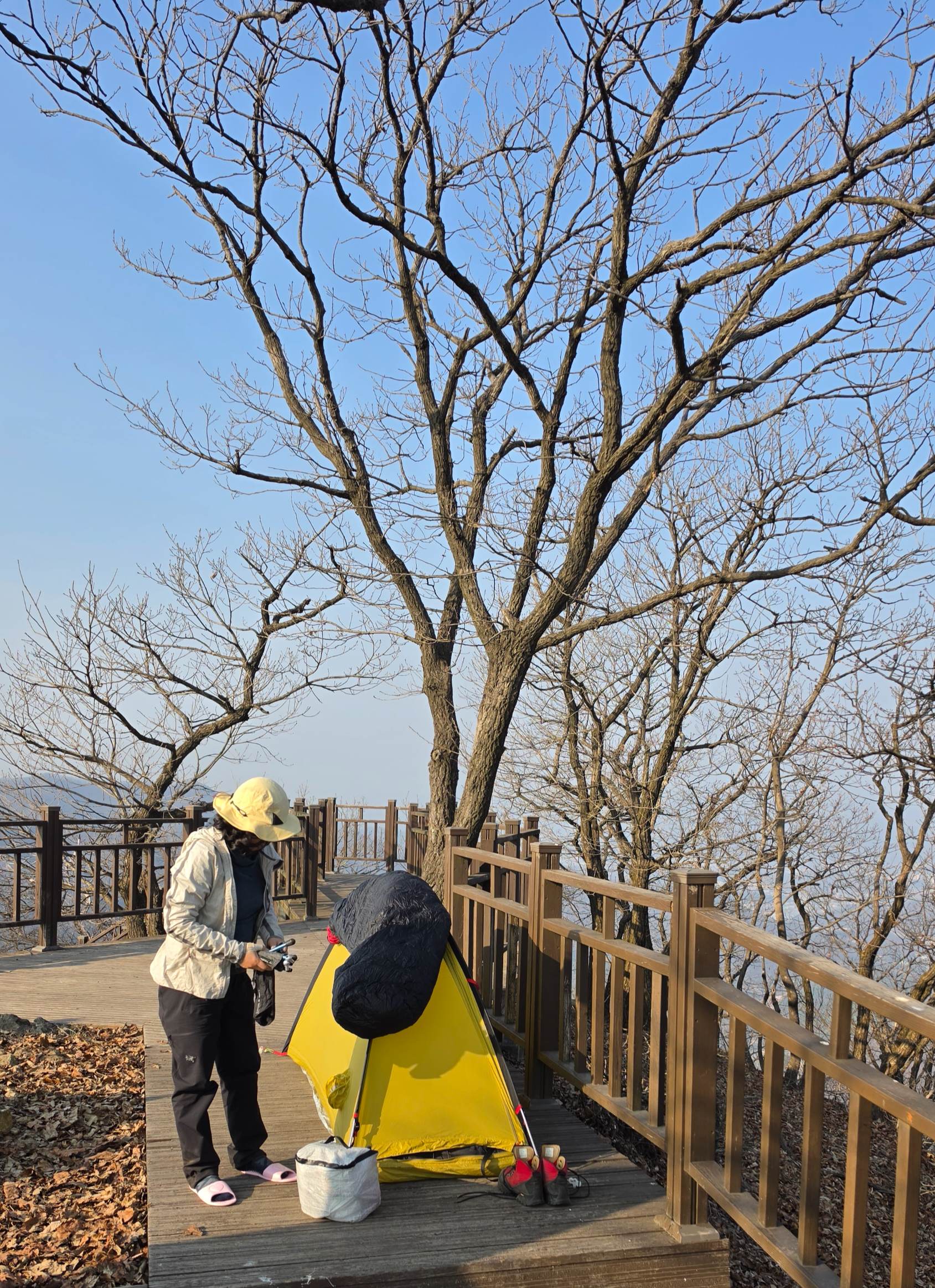 5시 넘어서 텐트를 치고 햇볕이 좋아서 오랜만에 침낭을 말렸다.